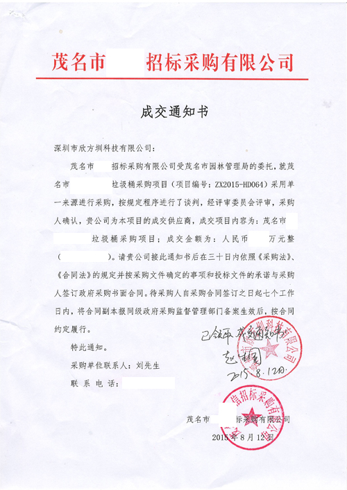 茂名市招標(biāo)采購(gòu)有限公司成交通知書: