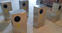 這是欣方圳為廣州高校生產(chǎn)的C383-2不銹鋼單面投放分類垃圾桶,尺寸規(guī)格為1000*400*1000mm,采用足1.0厚304#優(yōu)質(zhì)不銹鋼材料焊接成型,中間橫梁起到滅煙功能和做煙灰...