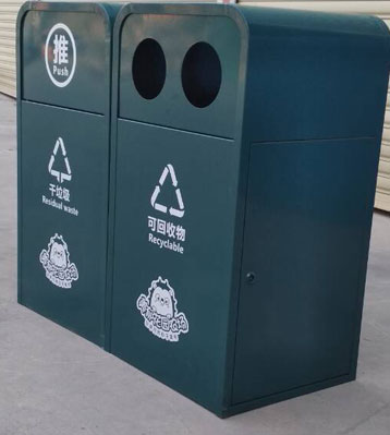湖北黃石兒童公園鋼制烤漆分類(lèi)垃圾桶美觀耐用